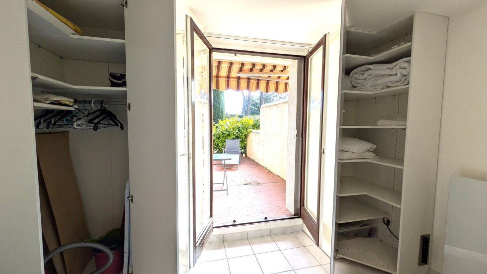 Vaste studio cabine de plain-pied, dans résidence de bon standing idéalement située, au calme à moins de 200 mètres de la mer et de la place du marché.