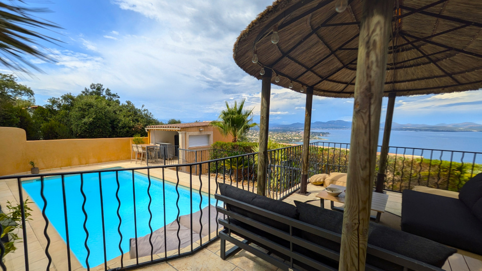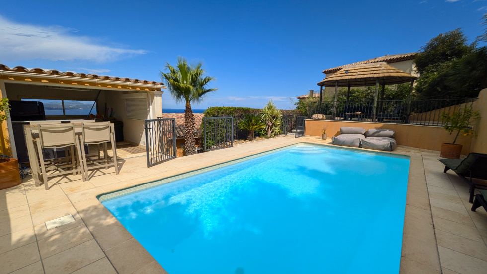 Prestations de confort et superbe vue mer pour cette villa de standing lovée au sein d'un jardin de 1100 m² agrémenté d'une piscine et d'un jacuzzi, dans secteur calme en limite d'une zone naturelle.