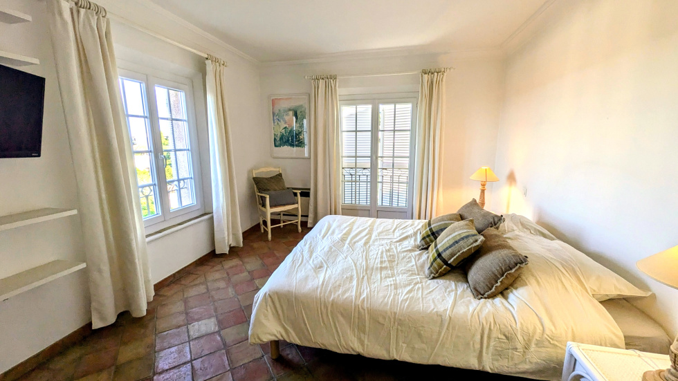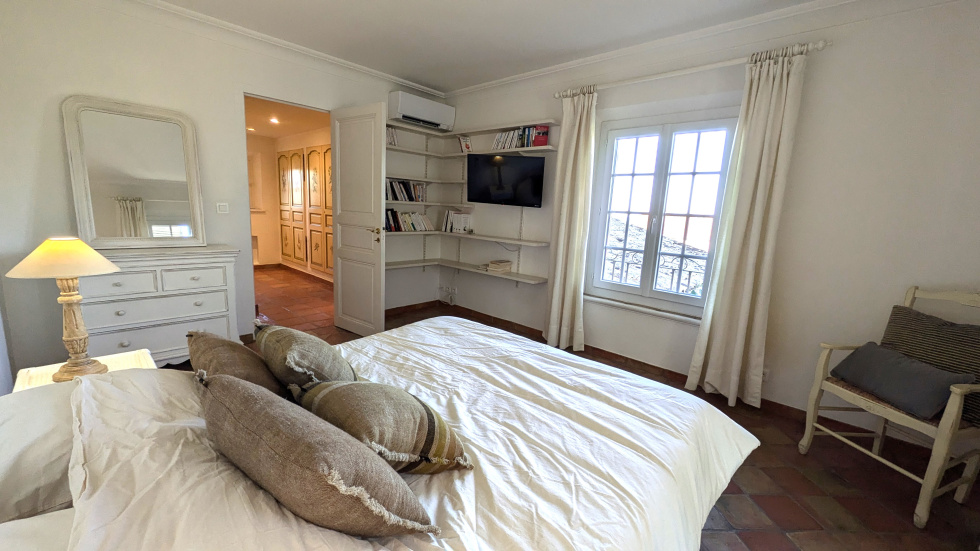 Au grand calme, à moins d'un kilomètre de toutes les commodités du village, demeure de charme de style tropézien conçue par un architecte de renom, au coeur d'un jardin paysagé agrémenté d'une piscine.