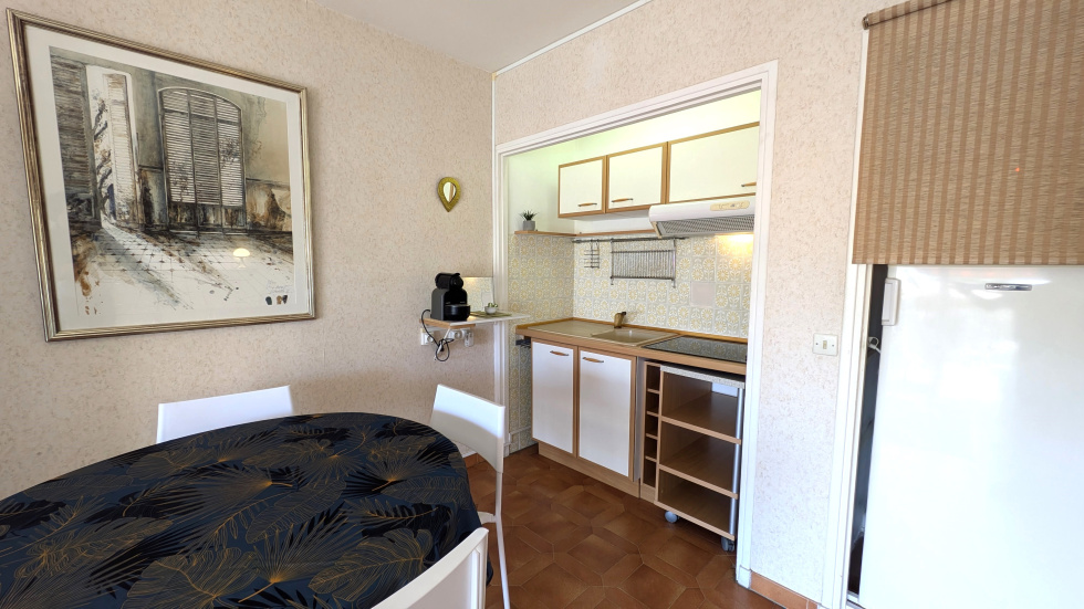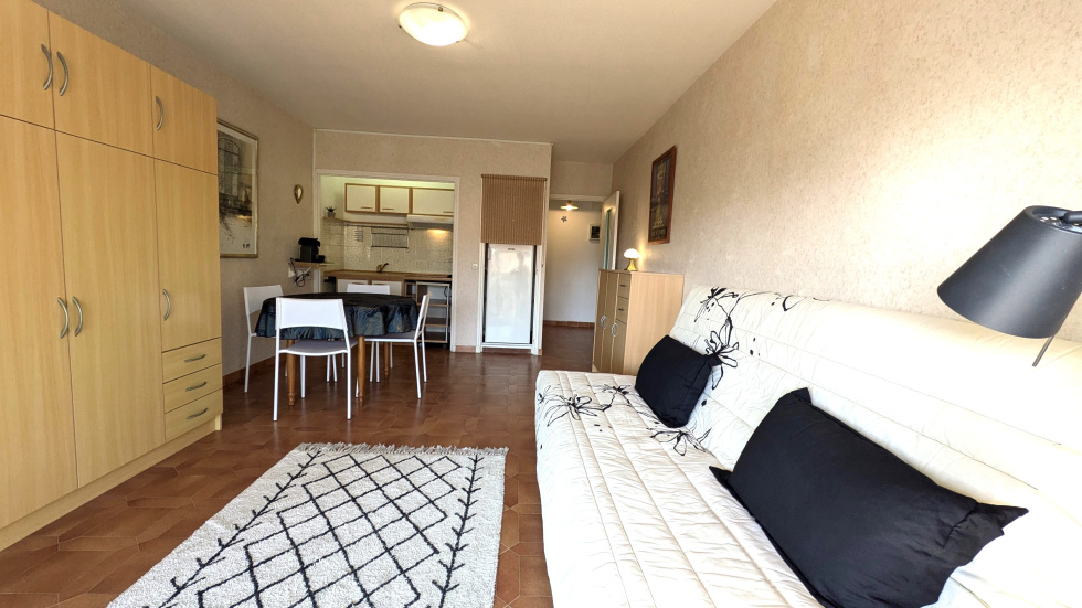 Situation exceptionnelle pour ce spacieux studio, au grand calme et en position dominante, dans une résidence avec ascenseur située à proximité immédiate des commerces et des premières plages.