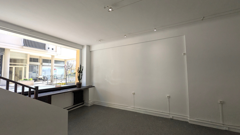 Superbe pièce d'accueil profitant d'une hauteur sous-plafond de 3 mètres et dotée d'une grande vitrine à forte visibilité, arrière-boutique composée d'un d'une cabine, une réserve avec fenêtre et des toilettes avec lave-mains.